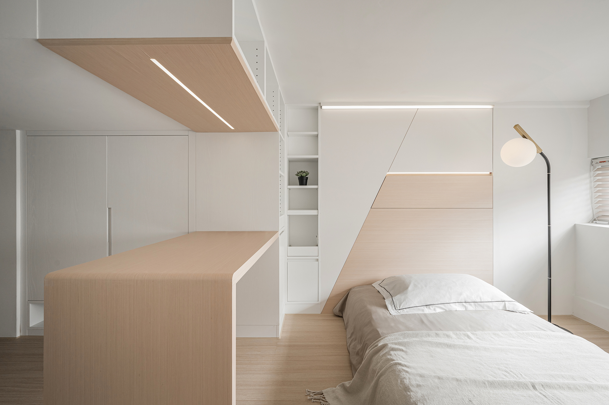 老屋翻新的設計裝修,總是蘊藏著許多精彩故事,屋況在數十載歲月裡,隨著時光日漸耗損、衰敗,或是建物先天不良的部分,透過設計師的慧眼與專業,讓空間搖身一變成為夢想中的幸福日常。本案也是前後對照下落差最大、成果也最突出的物件之一,很難想像原本老舊狹長、採光不佳,又漏水的30年樓中樓住宅,透過巧思翻轉了整個空間,宛如被施予魔法般精采重生,並贏得國際賽事評審青睞,一舉獲得3項設計大獎。